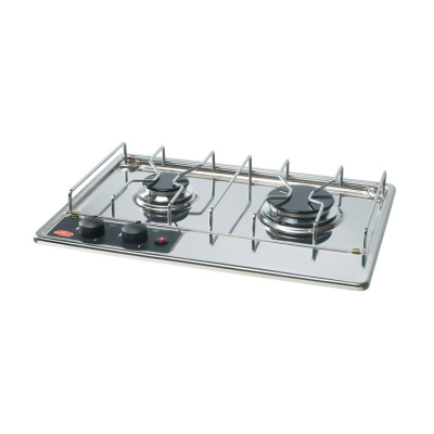 Inbyggnadshäll med eltändning i pressad rostfri plåt för nedfälld montering i pentrybänk. Två brännare på 1750W/2500W. Kan kompletteras med snyggt härdat glaslock. Även kastrullhållarkit finns som tillbehör.