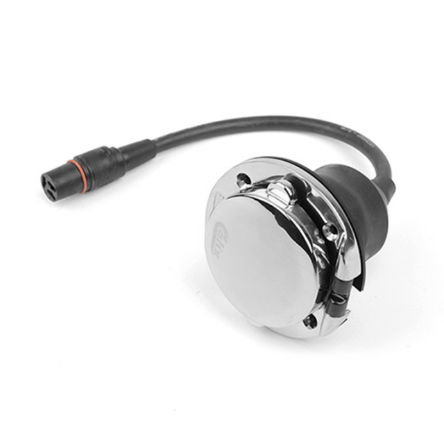 • För marint bruk. Intagskontakt Shore med kromat skruvlock.