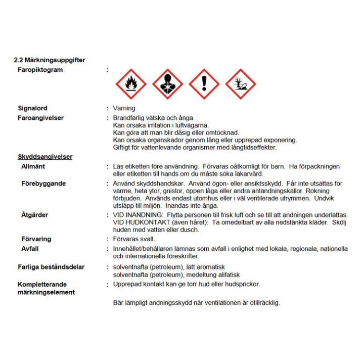 Säkerhetsdatablad SE - Egenskaper