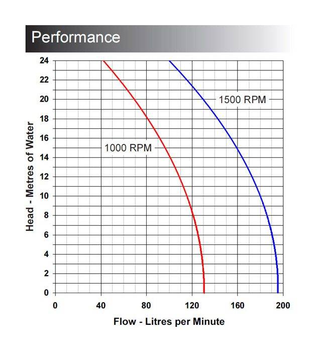 För kapacitet se produktspecifikation då det är beroende av motor varvtal. Kapaciteterna avser pumpning av vatten vid 20C med neoprenimpeller, vid högre temperatur eller viskositet sjunker kapaciteten.