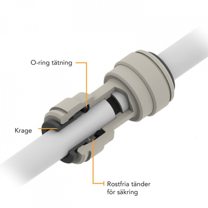 • Passar till John Guest 22 mm slang (utvändig dimension)