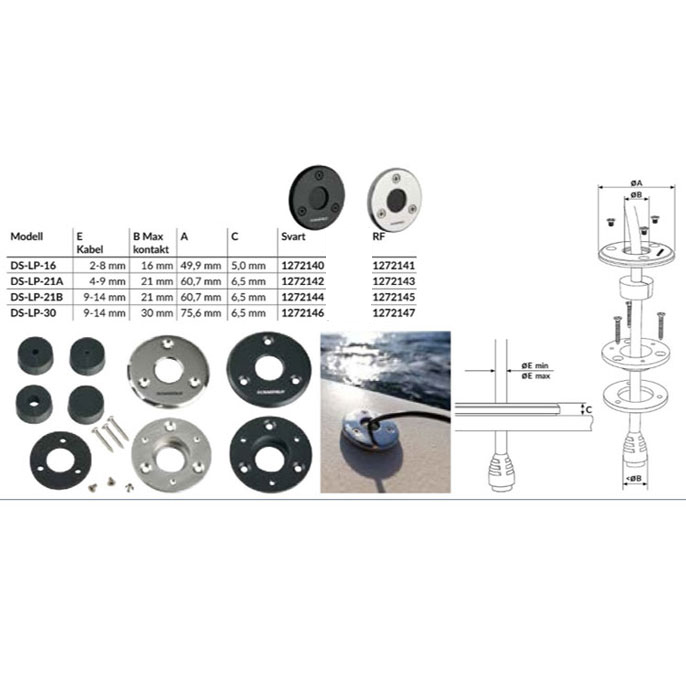 Scanstruts lågprofilserie döljer tätningstekniken under ytan för att skapa en vacker finish. Tillverkad i 316 rostfritt stål och finns tillgänglig i 4st olika utföranden för olika kabeldimensioner.