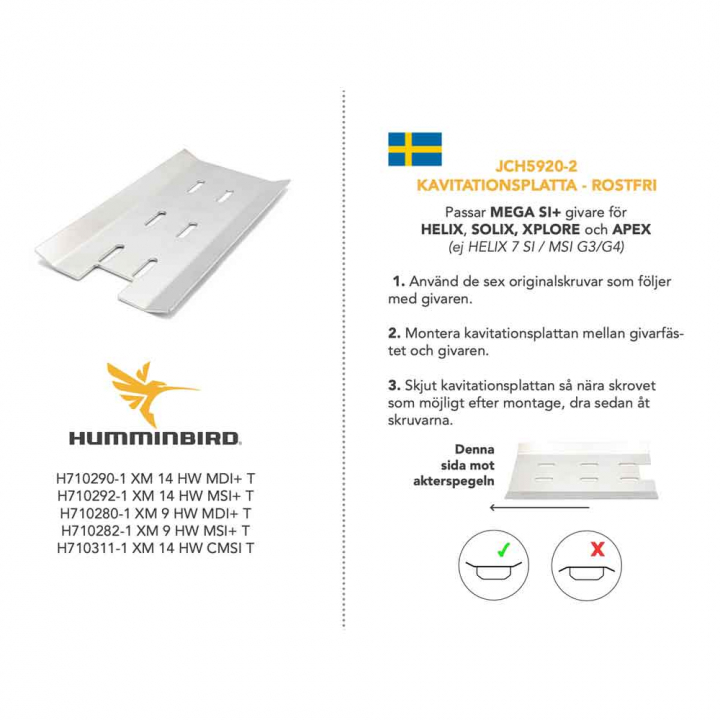 Kavitationsplatta för MEGA SI + Givare. Kan med fördel användas för ökad bottenkontakt i högre farter och motverka stänk.