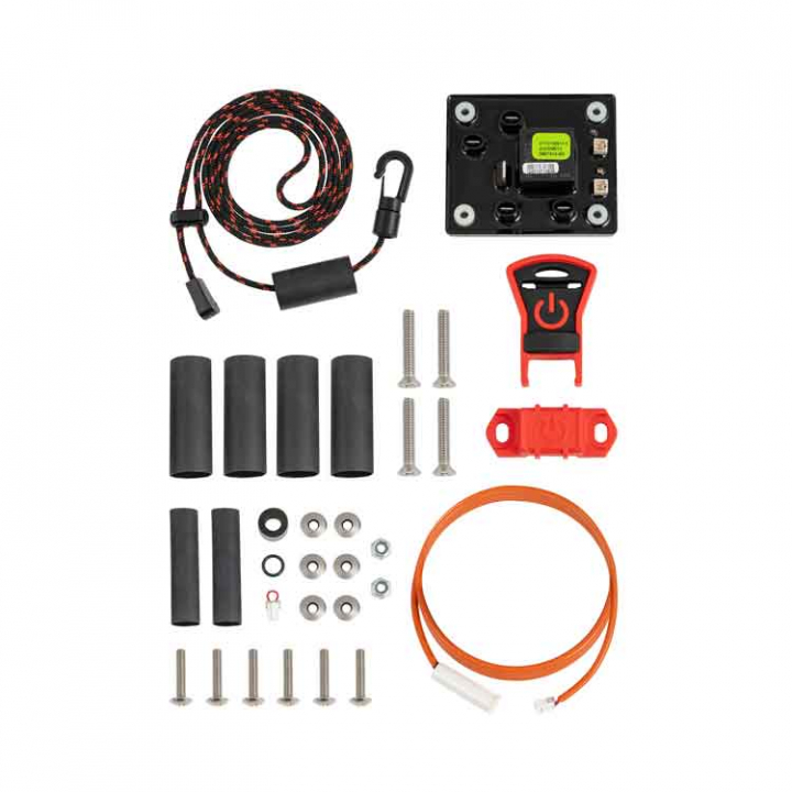 • Levereras med dödmansgrepp som monteras på strömmatningen till elmotorn.