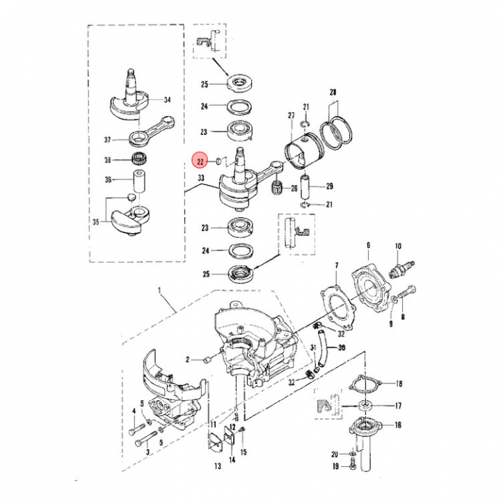• Key (16053), till vevaxeln på Mercury utombordare. Se sprängskiss/bild