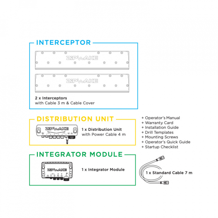 • Två interceptorer (300 mm), med 3 meter kabel samt kabelskydd till vardera komponent.