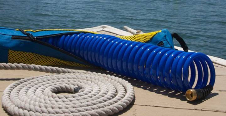 Hosecoil kit med spiralslang, bag samt munstycke för spolpumpar. Bagen både skyddar samt bibehåller spriralslangens form för många år framöver samt är enkel att stuva undan. Justerbart munstycke som även levereras med swivel fäste mot spriralslangen för bästa funktion.
