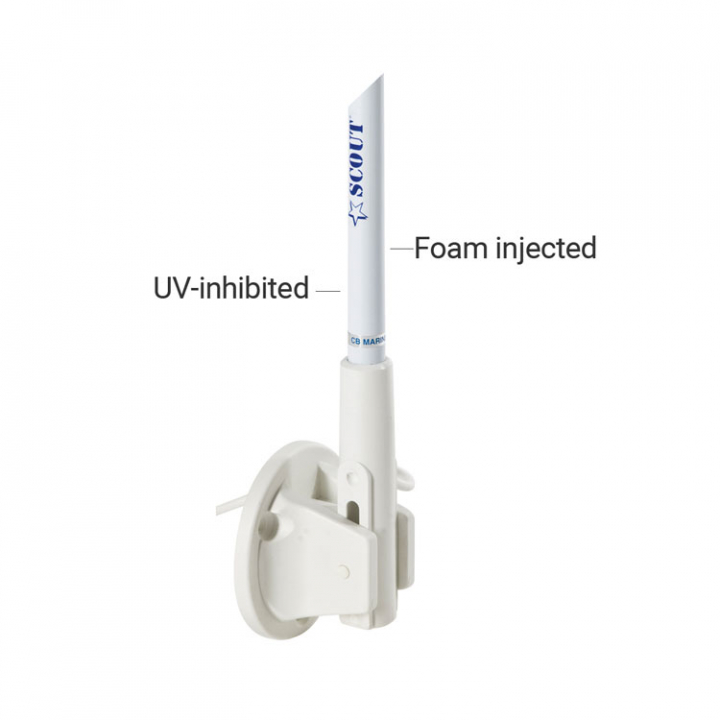 KM-22 BS från Scout är en robust VHF-antenn för motorbåtar, designad för stabil radiotäckning och enkel daglig användning. Den 1,5 m långa glasfiberantennen är helt skumfylld för att säkerställa en helt vattentät konstruktion som håller formen och anslutningen stabil i tufft väder.