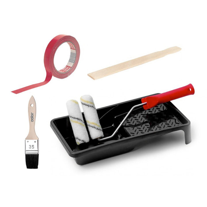 • Minirollerset med 2 st rullar, handtag och tråg.