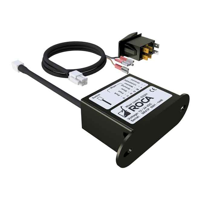 Liten kontrollbox för 1 torkarmotor, som passar alla Roca torkarmotorer. Kontrollboxen levereras med kabel och strömbrytare. Strömställaren kan styra alla funktioner, inklusive torkhastighet i intervaller - långsamt, snabbt och spolning.