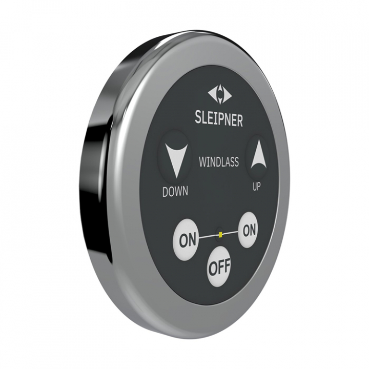 Rund kontrollpanel för ankarspel Ø51,8 mm. Som vanligt så är det snyggt och användarvänligt, som med allt Sleipner, just denna artikel är i det svarta utförandet men finns även tillgängligt i grått.