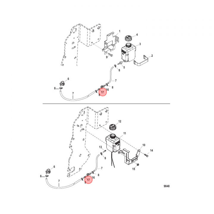 Koppling Hane (865191) som sitter efter reservoaren till drevoljebehållaren, till bland annat Mercruiser Alpha/Bravo. Titta i din epc för att säkerställa att delen passar just din motor. - Egenskaper