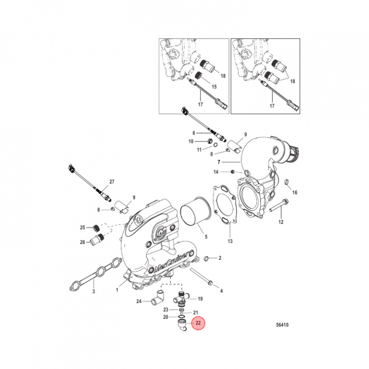 Koppling (862994T) till avgasgrenröret på Mercruiser motorer. Titta i din epc för att säkerställa att delen passar just din motor. - Egenskaper