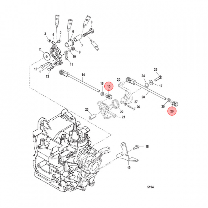 Koppling (817428) till gasreglagets länkage på Mercury/Mariner 2-10, 11-25, 30-40, 50-60 hk utombordare. Titta i din epc för att säkerställa att delen passar just din motor.