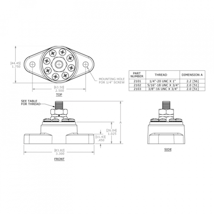 • Plintanslutning: 3/8″-16 x 3/4″ (9,5 mm)