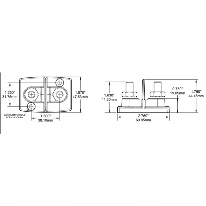 • Dual Powerpost för anslutning av plus och minus poler.• Dubbla 3/8"-16″ (M10) anslutningar med skyddshölje.
