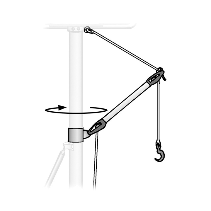 Praktiskt kran som gör hanteringen av motorn till gummibåten både enklare och smidigare.