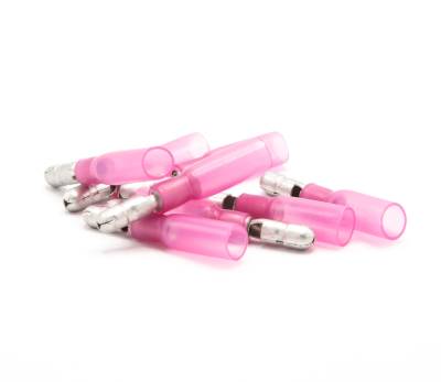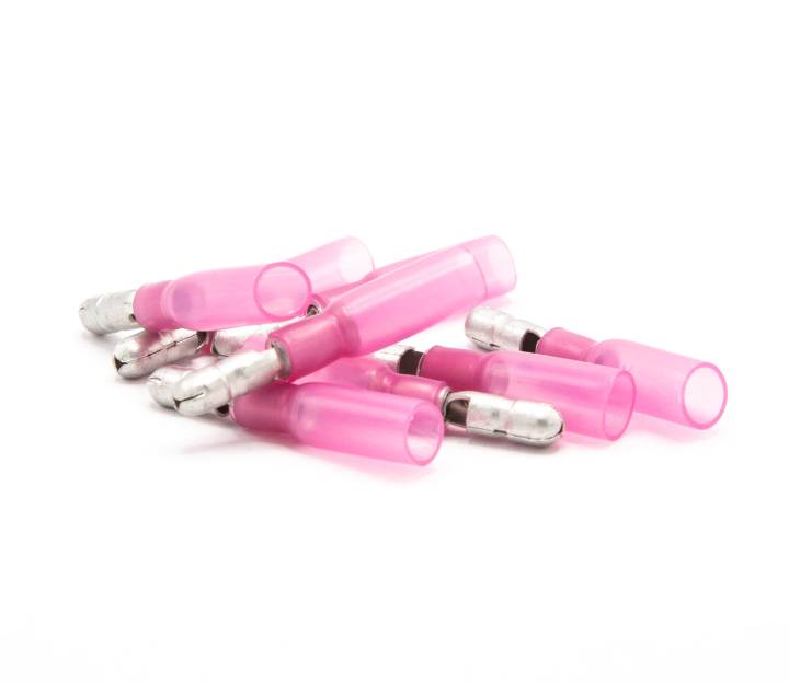 Röda rundstift-hane med limmande krymphylsa för kablage på 0,5-1,5 mm2.