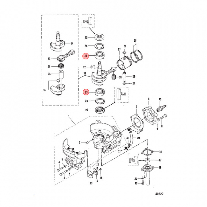 • Lager (16049) till Mercury vevaxel, se sprängskiss/bild för placering