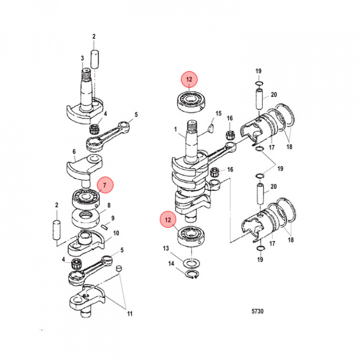 • Lager (160494) till vevaxel på Mercury utombordare