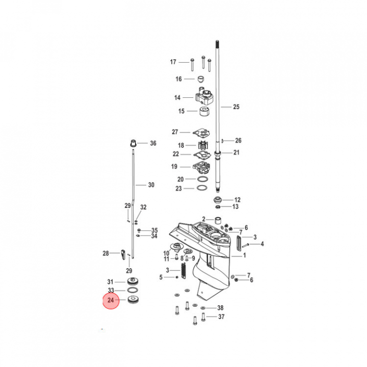 • Lager (16132T05) sitter på drivaxeln i växelhuset på Mercury utombordare.