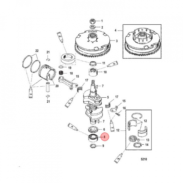Lager (63742T) till Mercury/Mariner 30-60 hk och 30 JET, 60 3cyl bigfoot. Titta i din epc för att säkerställa att delen passar just din motor. - Egenskaper
