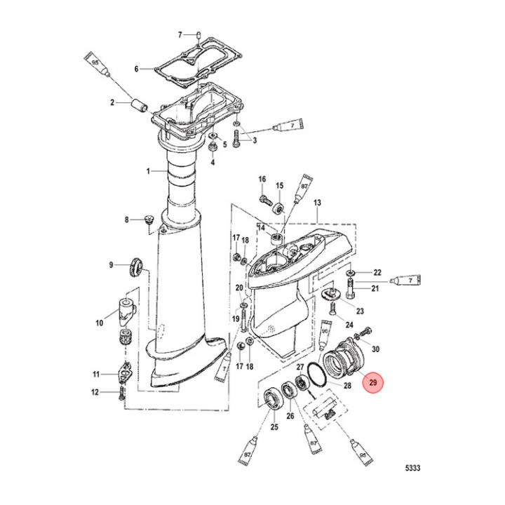 Lagerhållare (825118T) till växelhuset på Mercury/Mariner 2-10 hk utombordare. Titta i din epc för att säkerställa att delen passar just din motor. - Egenskaper