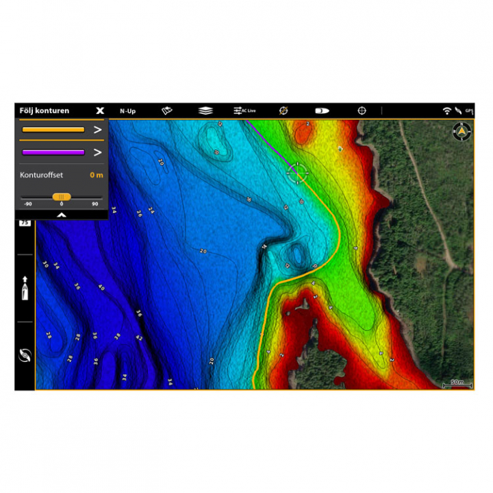 Navigera säkert och upptäck nya fiskeplatser med hjälp av skarpa satellitbilder. Tillgängligt på utvalda platser.