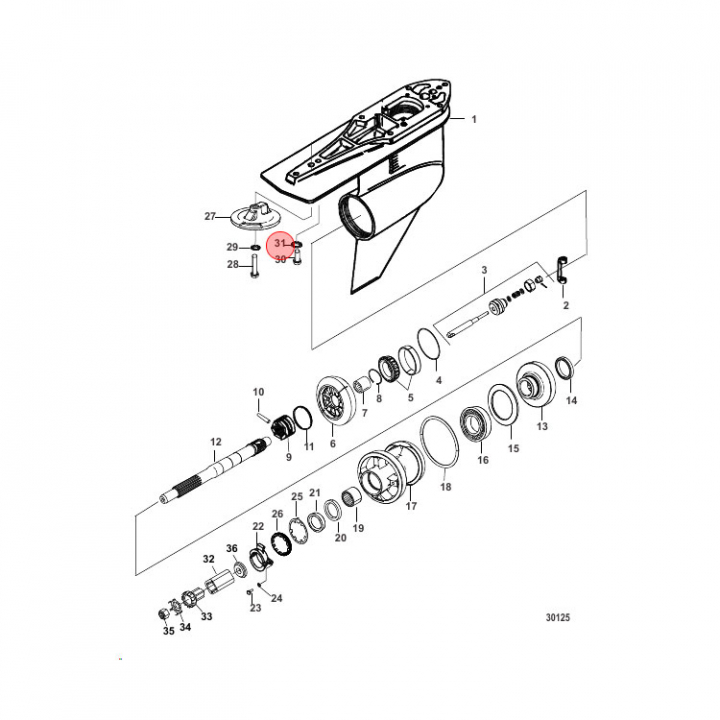 • Låsbricka (35479) till propelleraxeln i växelhuset till Mercruiser inombordare