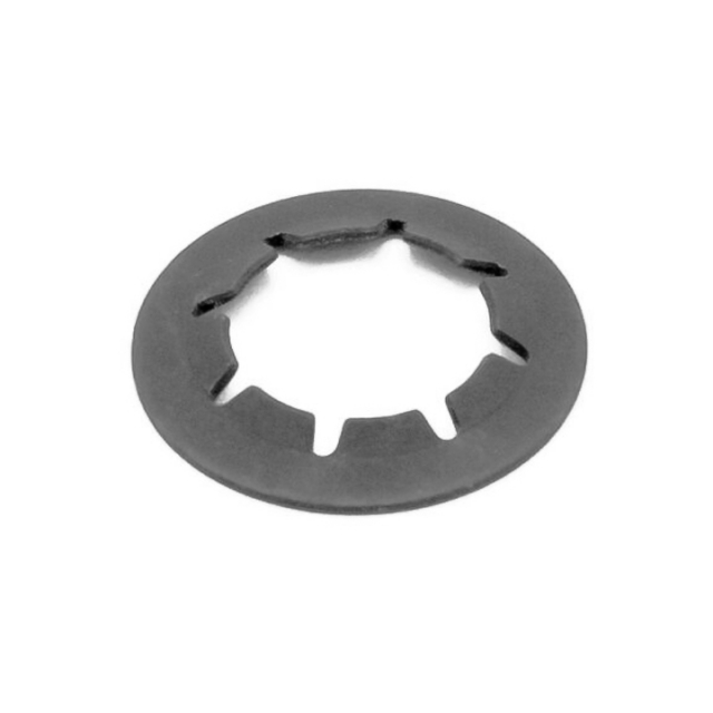 Låsbricka för genomgående axel i bas på frontmonterade elmotorer.