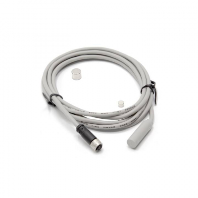 2m grå sensor med honkontakt för kättingräknare och två stycken magneter.