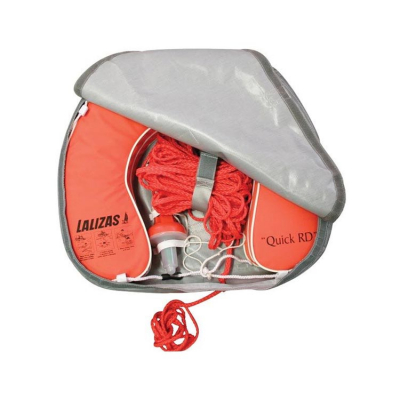 Orange hästskoboj med grått överdrag, 30 meter flytlina. Nödljusen är solas-godkända