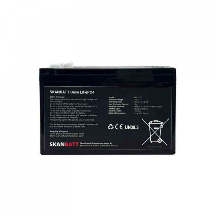 Skanbatt BASE LiFePO₄ – Solid kvalitet till ett överkomligt pris Säker och pålitlig ström – utan att betala mer än du behöver BAS12-12 från Skanbatt's BASE-serie är ett kompakt och robust litiumbatteri baserat på LiFePO₄-teknik. Batteriet ger säker och stabil strömförsörjning i ett litet format – perfekt för mindre applikationer där låg vikt, hög säkerhet och lång livslängd är avgörande.