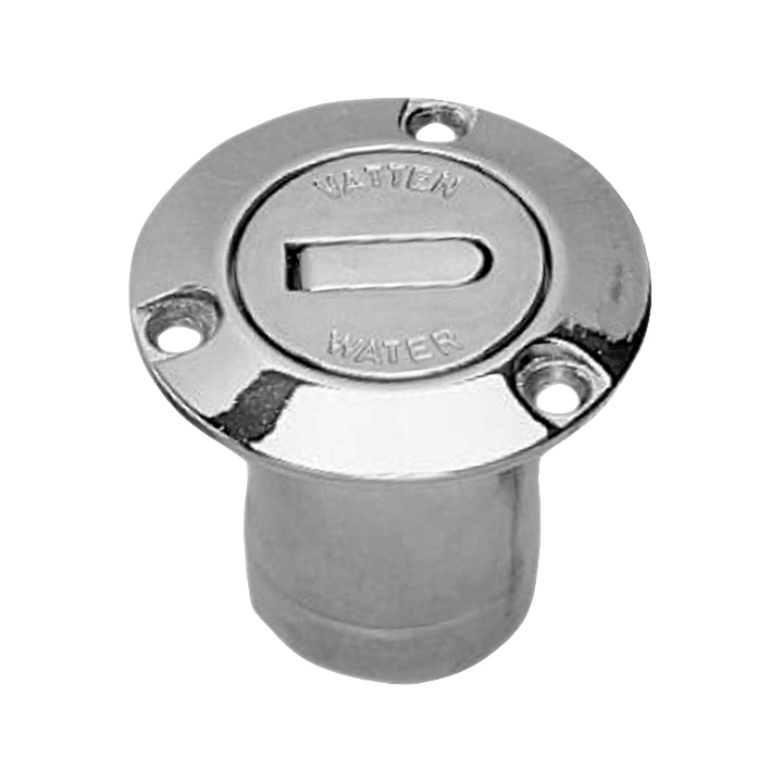 Mässing, förkromad, lock med kedja. Öppnas och stängs med hjälp av en i locket nerfälld rörlig klaff också av mässing. - Egenskaper