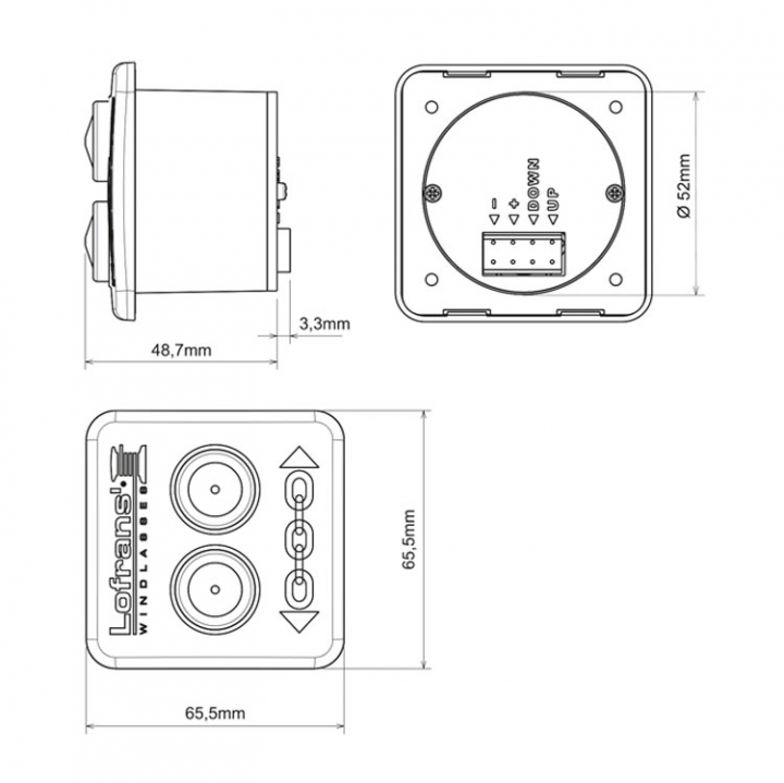 En touch-panel med låg profil för ankarspel, med LED-bakgrundsbelysta aktiveringsknappar. Konstruerad med säkerhet i åtanke, den har ett aktiveringsläge med två tryckknappar för att undvika oavsiktlig aktivering.