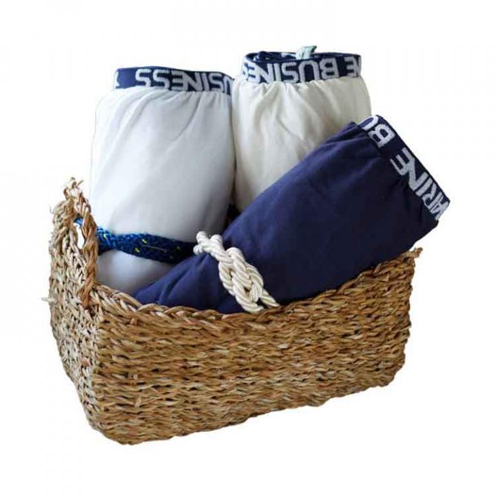 Finns i olika storlekar samt i marinblått och vitt.