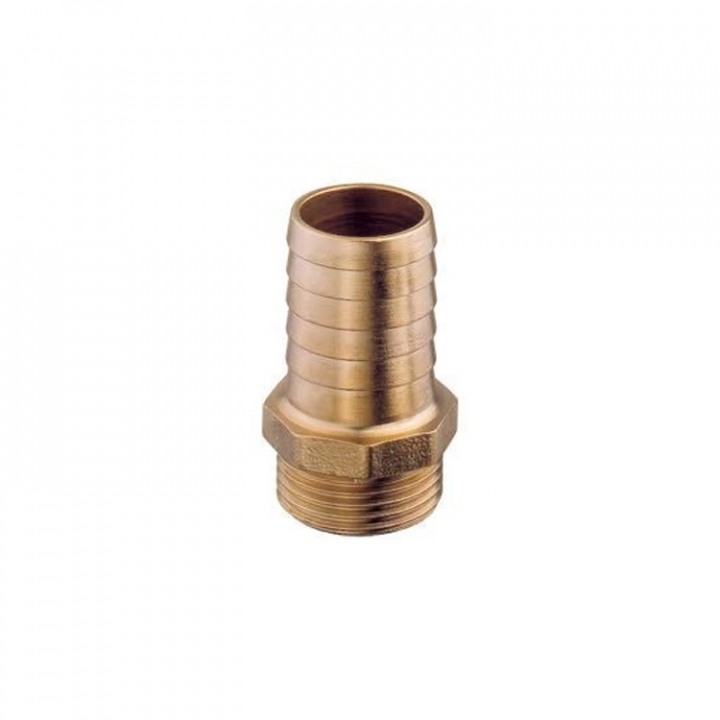 Mässingslangstos med yttergänga. Gängan är en rörgänga och finns i olika storlekar. - Egenskaper
