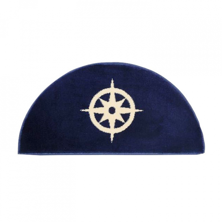 Matta kompass halvrund. Tålig polyestermatta med dekor. Kantsydd för ökad hållbarhet. Halkskydd på undersidan. Marinblå med vit dekor. - Egenskaper