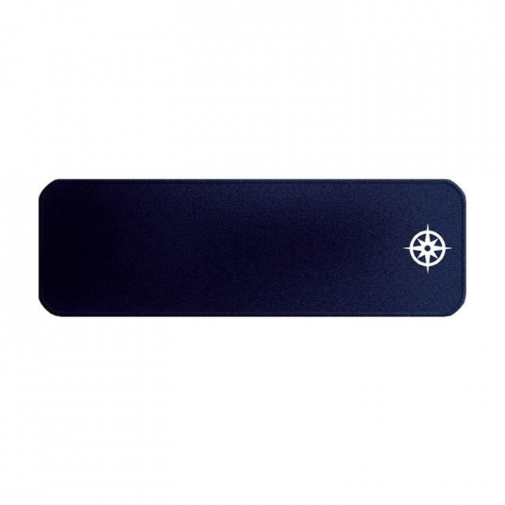 Tålig polyestermatta med dekor, den är kantsydd för ökad hållbarhet. Halkskydd på undersidan. Marinblå med vit dekor. - Egenskaper
