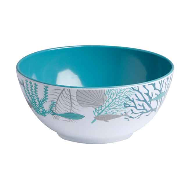 Costal stöttålig melamin servis är en serie av melamin med en fräsch och elegant design för att sätta färg på bordet. Coastal-kollektionen är inspirerad av havsbotten med olika nyanser av blått.