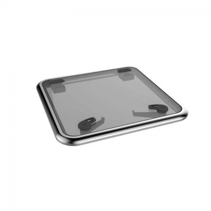 Tack vare utvändiga handtag kan luckan öppnas från däck om den inte är låst. Friktionsgångjärnen kan hålla luckan öppen i upp till 95°. Eloxerad aluminiumram för korrosionsbeständighet. Böjd övre ramprofil för styrka och modern design.