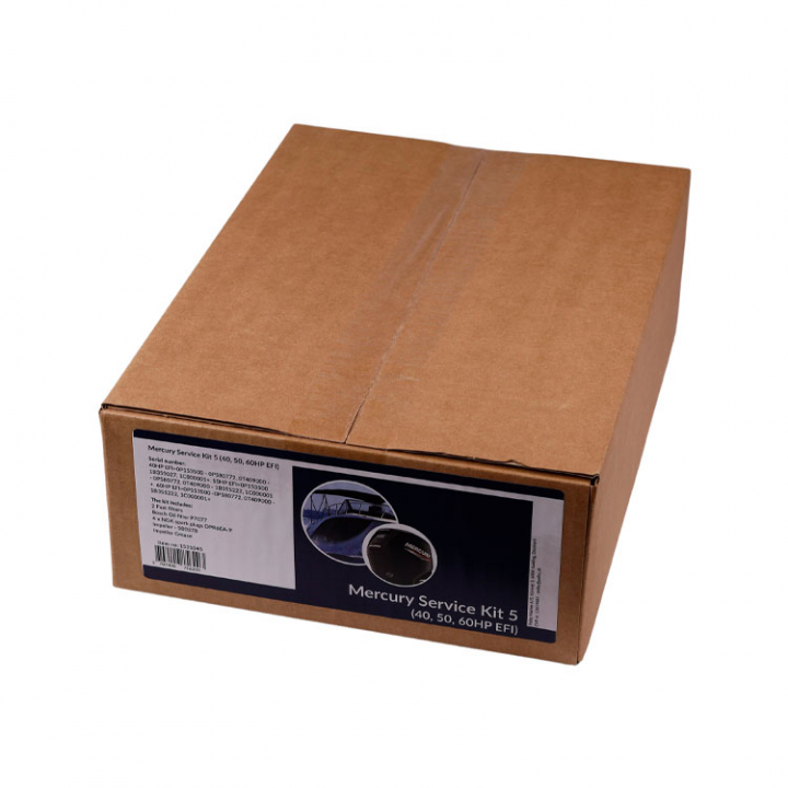 Mercury servicesats till 40,50, 60, HK EFI. Serienr. 40HK EFI=0P153500 - 0P580772, 0T409000 - 1B355027, 1C000001+. 50HK EFI=0P153500 - 0P580772, 0T409000 - 1B355222, 1C000001 +. 60HK EFI=0P153500 -0P580772, 0T409000 - 1B355222, 1C000001+. Innehåller oljefilter, bränslefilter, tändstift och impeller.