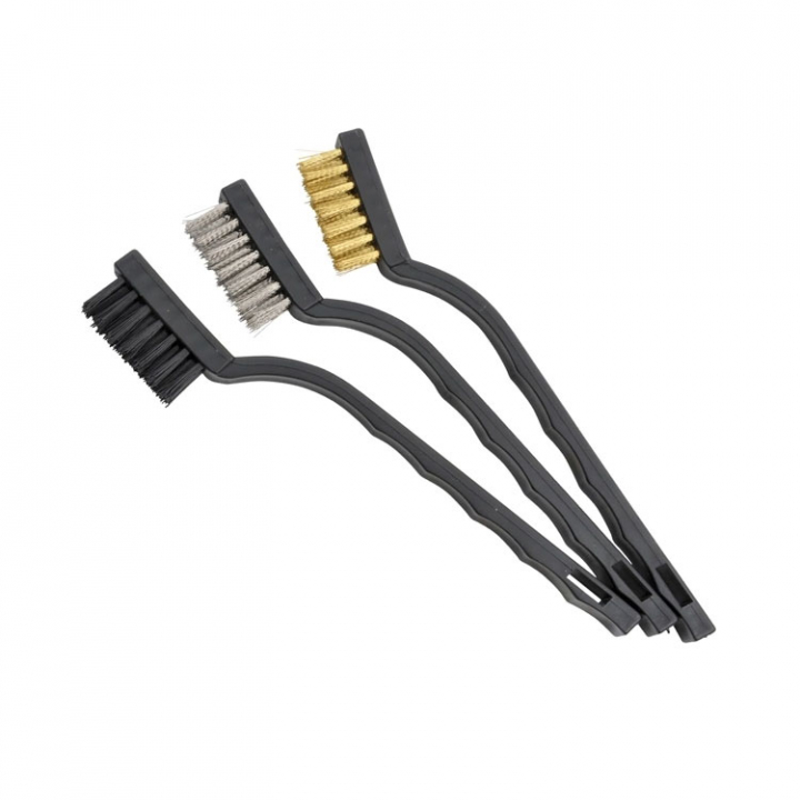 Ett mindre borstset som består av tre delar med mässing, stål och nylonborste.