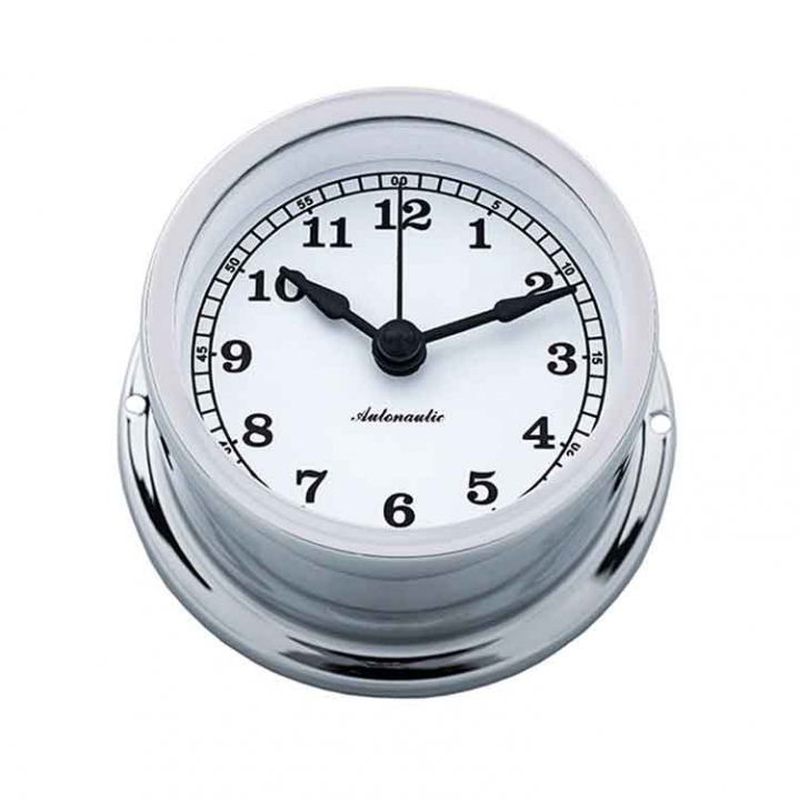 Autonautic Skeppsur Minor 72 är det minsta instrumentet i serien med en bas på endast 72 mm. Tillverkat i underhållsfri förkromad mässing och utrustat med exakt Quartz-teknologi enligt DIN 8325-standard. ISO 9001-certifierad kvalitet garanterar lång livslängd och precision. Perfekt för båtar där utrymmet är begränsat, men funktionalitet och stil är avgörande. Passar även husvagnar och autocampers.