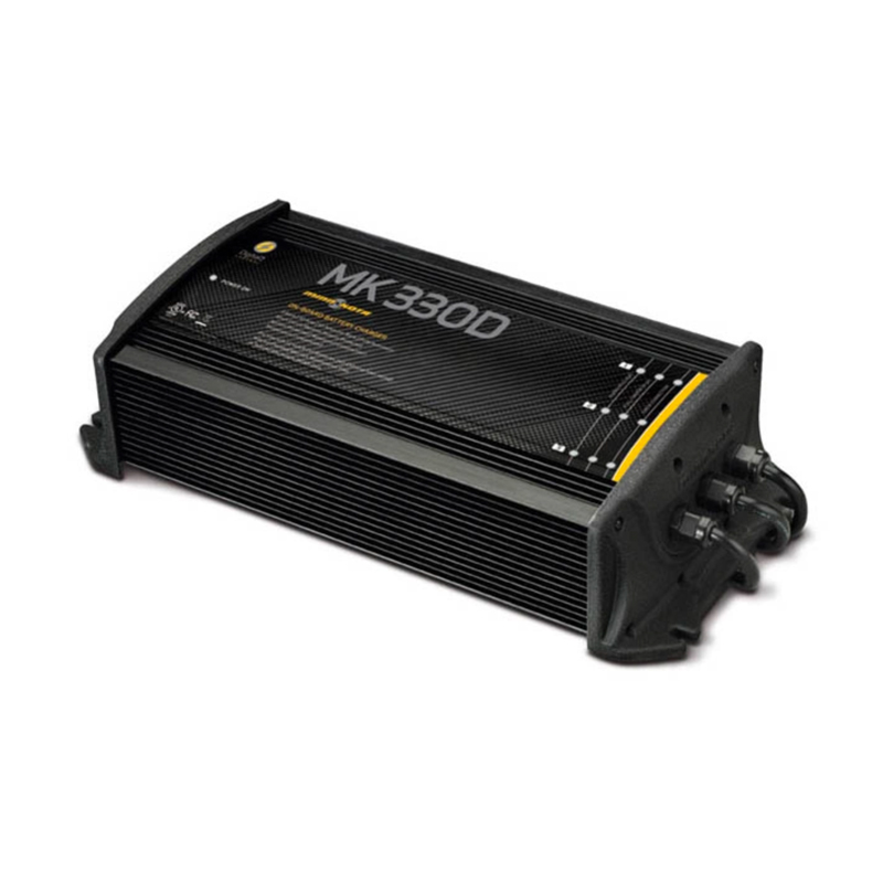 Minn Kota batteriladdare 12V 3x10A (totalt 30A) för fast installation anpassad för batterier upp till 130Ah (totalt 390Ah). Den har fastmonterad laddningskablar med säkring på varje utgång.