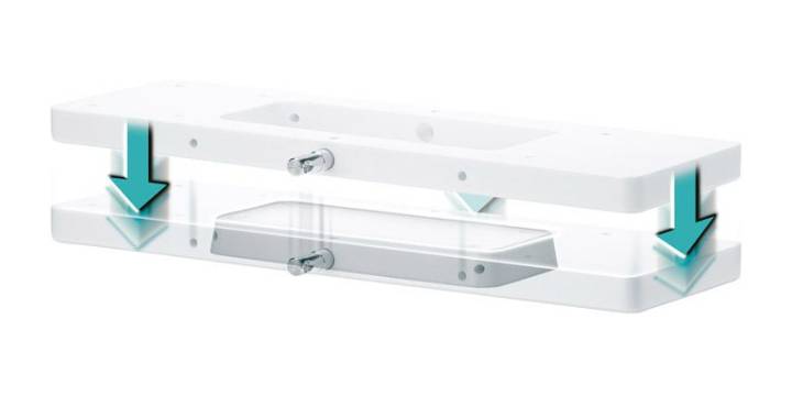 Snabbfäste för frontmonterade motorer av kompositmaterial som gör det lätt att ta bort motorn. Den låga profilen gör att däcket förblir rent när motorn inte är på plats. Låshandtag i rostfritt stål kan säkras med hänglås.