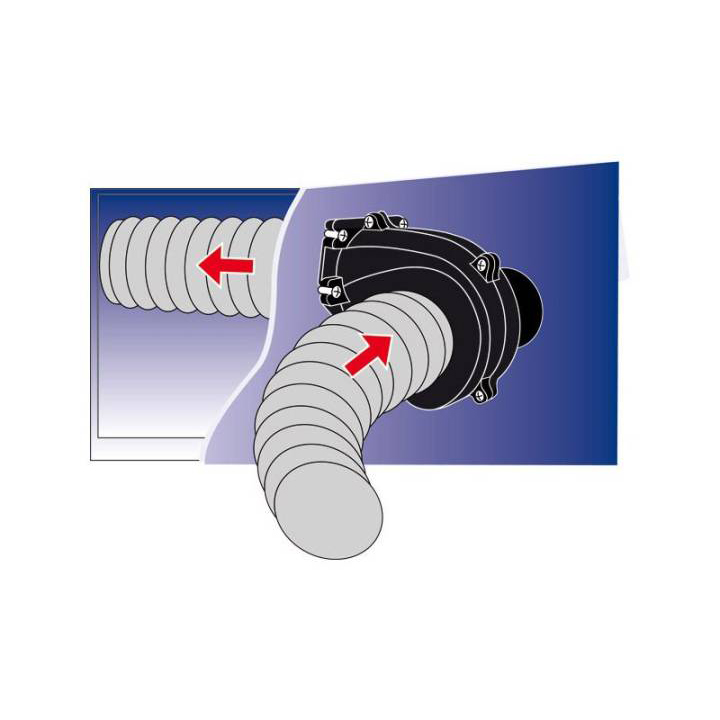 12V Motorrumsfläkt för flänsmontering med ett flöde på 2,9 m³/minut. Används vanligtvis för att ventilera motorrummet före start men kan också användas för att ventilera andra utrymmen.