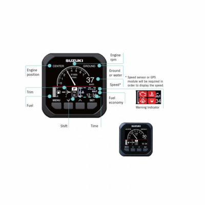 Suzuki Multi-Function Gauge. Elektrisk enhet som ger dig all information på samma plats. Denna briljanta teknik ger dig rätt information vid rätt tidpunkt. Allt i en användarvänlig och snygg enhet. Denna enhet är kompatibel med Suzuki utombordsmotorer från 2018. Det finns även en smidig funktion som gör att du kan sköta din trollingfunktion via denna panel, det kräver dock att du har det som standard på din motor.