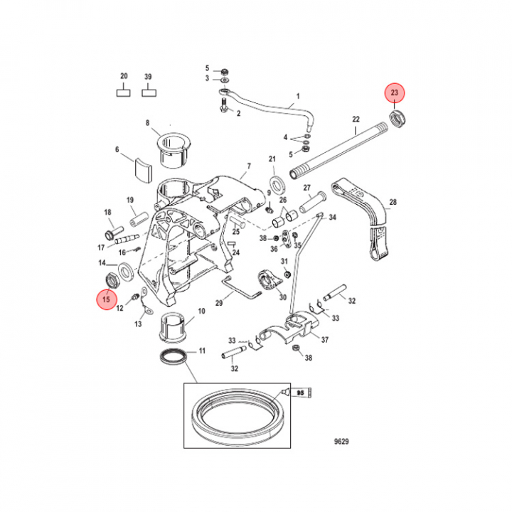 Mutter Mercury 4-300 hk (858869), kommer i ett 5-pack . Titta i din epc för att säkerställa att delen passar just din motor.