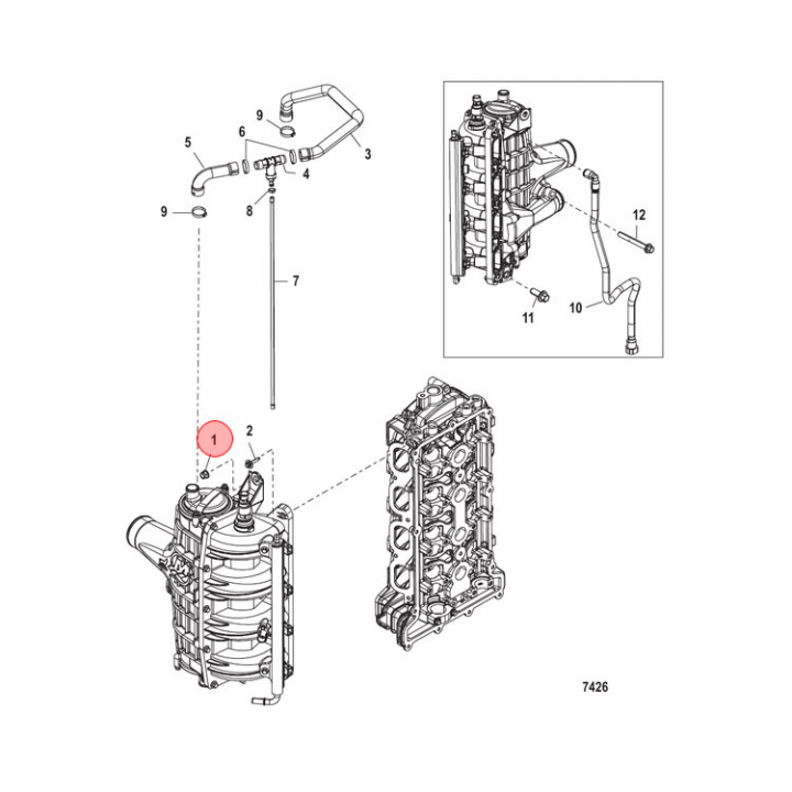 Mutter (826292) till olika användningsområden på Mercury/Mariner 30-40, 50-60, 75-125, 135-200, 225-400 hk utombordare och Mercruiser 8.1/8.2L V8 inombordare.